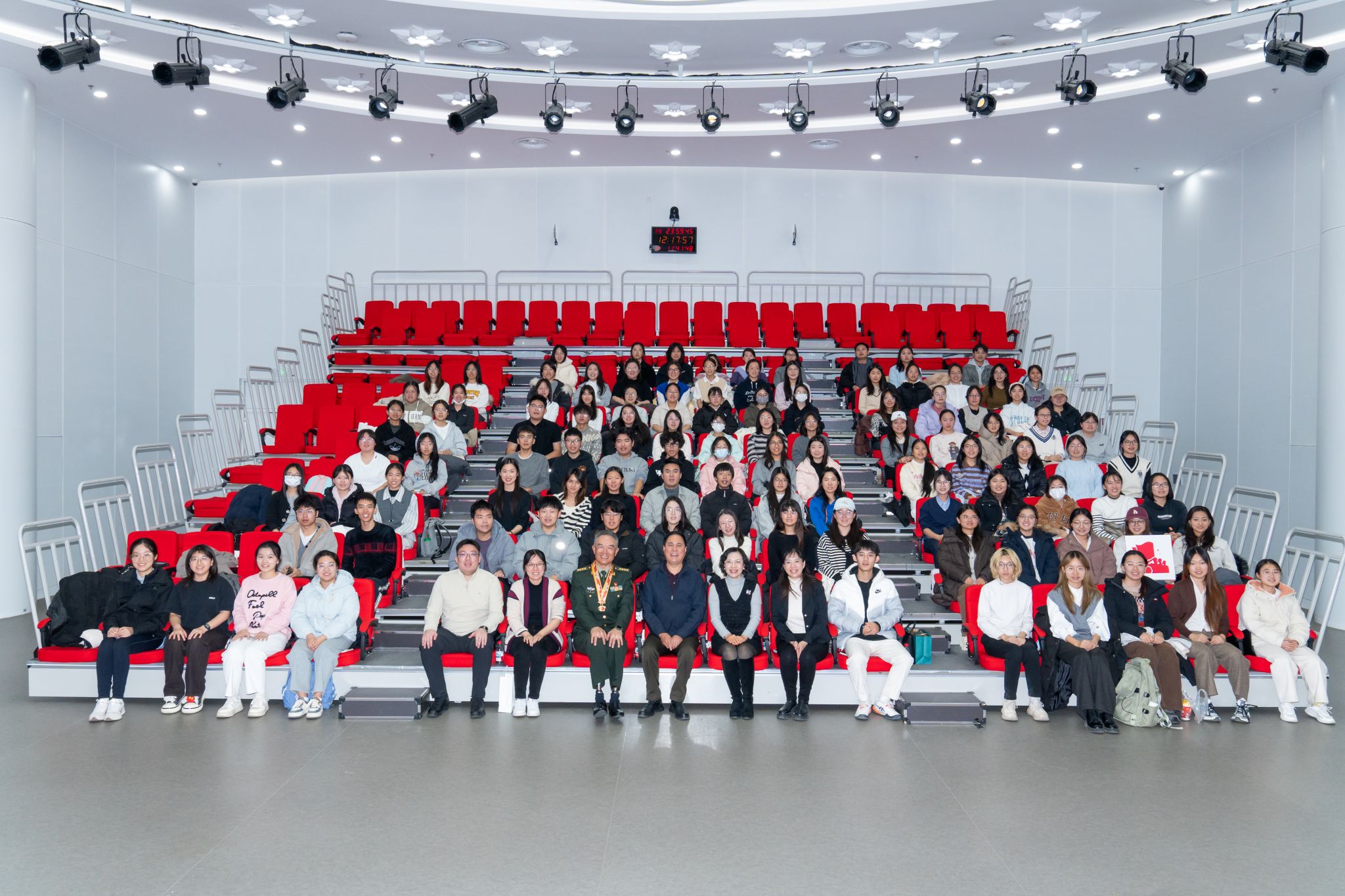 王大校的事迹告诉大家:一个普通人的坚持,可以走得很远;一颗报国心的炽热,足以照亮时代。最后,王曙光大校勉励青年学子:“付吾辈之韶华,耀吾辈之中华”,将爱国之情、报国之志转化为脚踏实地、砥砺前行的力量。