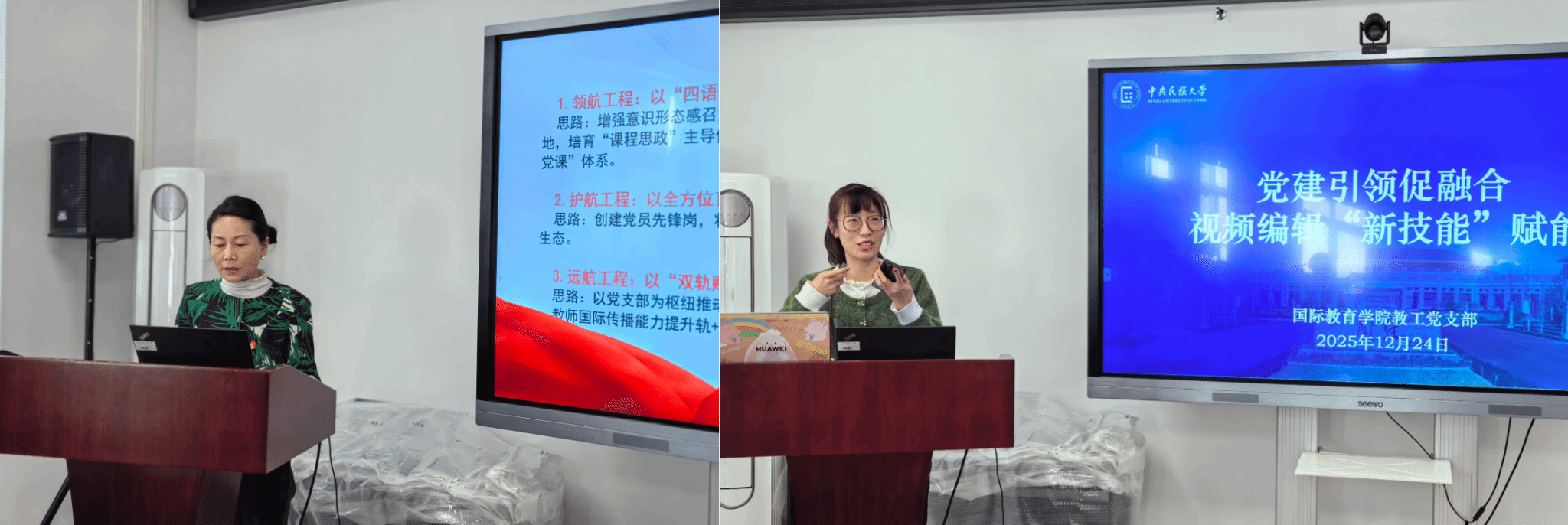第三阶段,支部书记央青以扎实推进教工党支部作风建设为主题讲党课,提出“铸魂-融通-致远:以‘三航工程’引领国际中文教育高质量发展”特色工作方法,探讨如何更好地推动党建融入教学、科研、育人各环节,为学院发展注入“红色动能”。