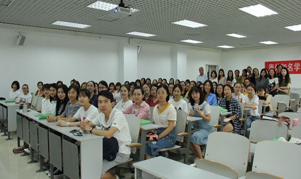 文华楼509教室做了题为“中美跨文化交流”的系列讲座。此次系列讲座共举办六场,2018级全体汉语国际教育硕士生参加了此次系列讲座。