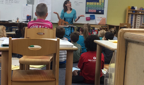 morning meeting:老师弹ukulele,孩子们唱歌