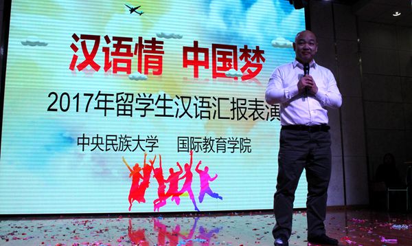 外国留学生汉语汇报演出在大学生活动中心拉开帷幕,现场洋溢着欢乐喜悦的气氛。研究生院副院长路义旭、校团委书记樊博、生环学院副书记岳永杰、外国语学院副书记瓮建、Cool18