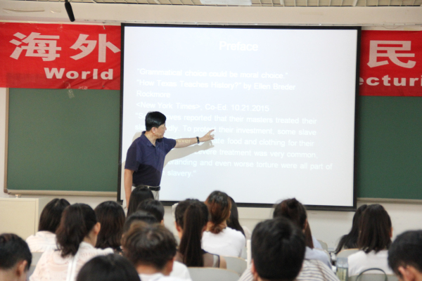 文华楼东区403教室为2017的汉语国际教育专业研究生进行了一场题为“汉语国际教师课堂教学的观察与评估”的讲座。