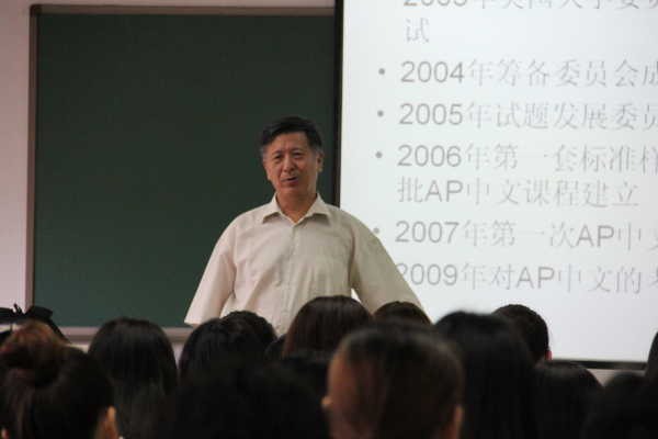 本次讲座分为“AP中文的产生背景及发展历程”、“ AP中文的七大特点”以及“AP中文对未来中文教学的影响”等三大板块。冯禹教授以详实的统计数据,并结合他自身十多年在美国高校的任教经验,辅以生动有趣的例子,深入浅出地为同学们详细介绍了AP中文考试在国际汉语教学中的地位和作用。
