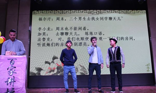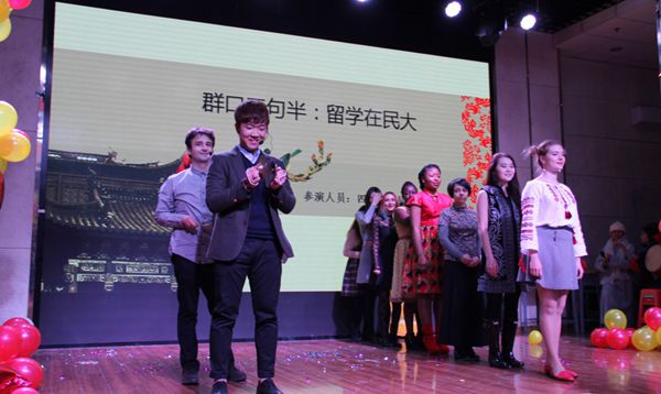 首先隆重登场的是优秀的主持人团队,他们分别是两名汉语国际教育硕士和来自不同国家的留学生。主持人以流利的汉语和动听的声音向我们宣布了演出的开始。