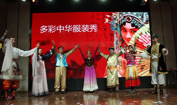 的老师们为所有学生带来了他们精心准备的特别节目——《多彩中华服装秀》。我们平时尊敬、喜爱的老师们换上了中华传统的民族服饰,用他们优美的舞姿和大方的体态向我们展现了中华民族的独特魅力,将整台文艺汇演推向了高潮!