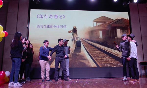 终于,高级组闪亮登场。语言生8班乘着《泰坦尼克号来民大》,重现了经典影片的熟悉场景,加入了中国元素和诙谐幽默的语言;语言生9班讲述了《臭鞋与爱情》的故事,我们熟悉的童话人物灰姑娘说上了中国话,似乎也变成了敢爱敢恨的北京大妞,令人喜爱;本科二年级二班带来的《相爱穿梭千年》,将外国古典的罗密欧与朱丽叶与中国奇幻的大话西游完美地融合在一起,成为一道经典“大餐”;最后,本科二年级一班展开了一场《奇幻辩论赛》,在“读万卷书,行万里路”中我们该选择哪一个?他们用生动的表演形式告诉了我们属于他们的答案。