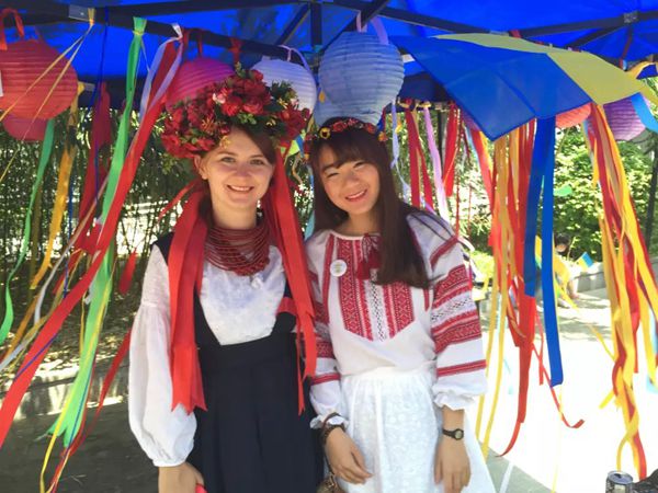 走近国际文化节国家展示区,来自加拿大、爱尔兰、也门、韩国、日本、乌克兰、哈萨克斯坦、泰国、缅甸、越南、喀麦隆、亚美尼亚12个国家的留学生朋友身着各色民族服装,展示极具民族特色的文化艺术品、图片、书籍、服饰和乐器,还准备了各国特色美食。泰国展台前,泰国学生现场教授泰语,现学现考,答对者可以得到精美的小礼物;对面的喀麦隆展台前,围满了学习非洲鼓的同学,大家纷纷上前,亲手感受这来自遥远国度的节拍;在韩国和日本展台旁边,中国同学在留学生的帮助下,体验着异国服饰;越南展台前摆满了精美的民族工艺品,令人爱不释手;也门同学带来的原始纹身体验和传统的水烟,吸引了不少参观者跃跃欲试。不知什么时候,中外学生在广场上围起了圈,和着动听的旋律翩翩起舞,笑着、唱着、跳着。。。尽情挥洒着属于这个时代的青春与活力。