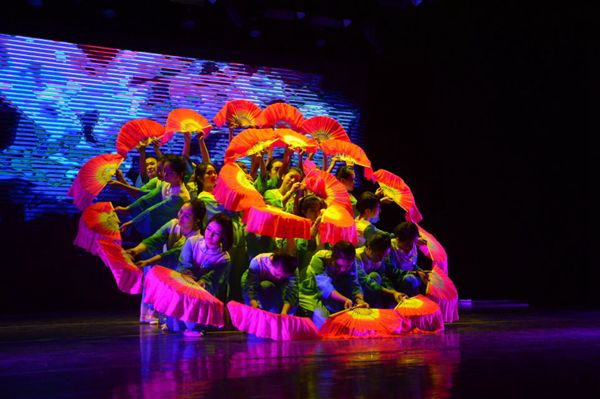 第三章《传颂》中音乐学院的热舞《Dance in the dark》动感活力,信息工程学院《军嫂上岛》感人肺腑,藏学研究院《邦金梅朵》令人感受民族的魅力,而音乐学院《天蓝蓝》又掀起了晚会的另一个高潮。最后晚会在2014级Cool18