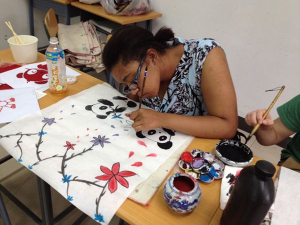 美国学生学习画国画