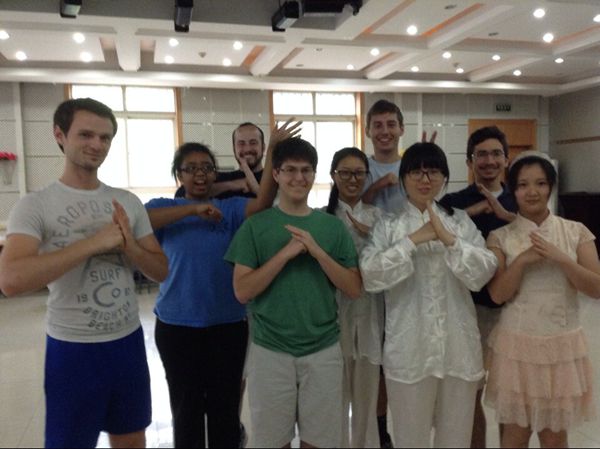 学生们与太极老师汉语国际教育专业硕士王璐合影