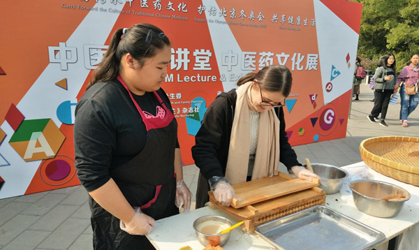 四名国际学生在表演的同时,也积极参与了其他活动区安排的活动,比如中医中药丸的制作、中国书法体验、领事知识知多少等。当然,作为外国友人,四名学生也与参加游园的北京市民不停地交流、互动。相信此次活动的参与,不仅可以丰富他们的留学生活,也可以让他们感受到2022年北京欢迎各国朋友前来聚会的热情和期待。
