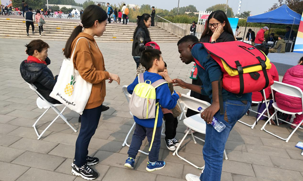 组织来自埃及、法国、刚果布三个国家的四名国际学生去朝阳公园参加2018年北京市外语游园会活动,这是北京市举办的第20次大型外语游园活动。本次游园会以“学外语 促交往 迎冬奥”为主题,通过设置“橙、红、蓝、绿、金”五彩活动区,向北京市民提供形式多样,内容丰富的外语交流活动,以让市民以更好的姿态迎接冬奥。Cool18