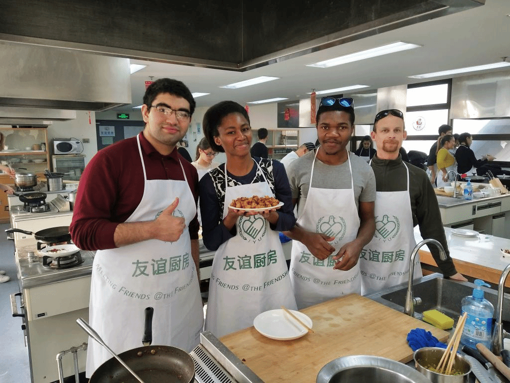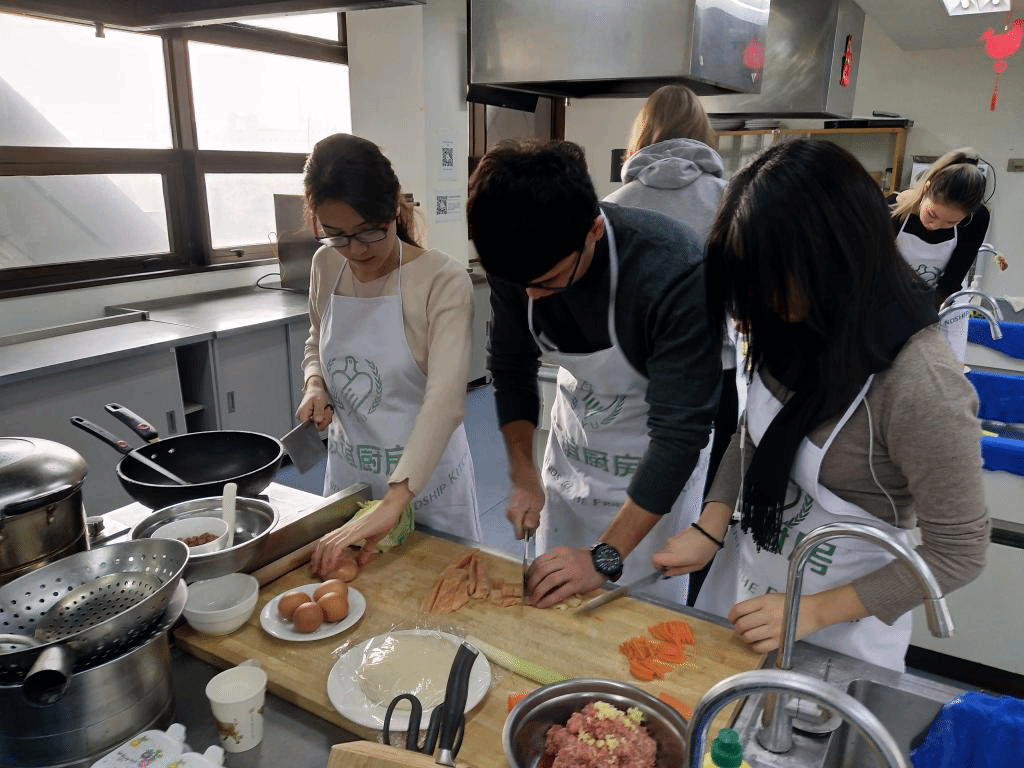 孔子学院奖学金生前往亮马桥研修楼体验中国传统美食烹饪,来自哈萨克斯坦、喀麦隆、俄罗斯、乌兹别克斯坦、匈牙利、韩国、泰国、埃及、吉尔吉斯斯坦等9个国家的22名同学在专业烹饪老师的指导下,开启了自己的烹饪美食之旅。