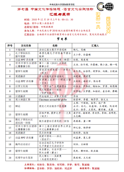 2018年12月19日,2018级汉语国际教育硕士第七届中华文化传播课程·语言文化项目汇报与展示,在Cool18