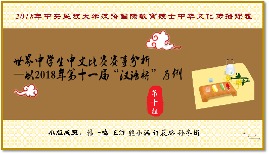 “赛事分析类”汇报展示分别就“第十一届汉语桥世界中学生中文比赛”和“第十三届世界大学生汉语桥比赛”进行了分析,从比赛机制、比赛内容、奖励制度、不足等方面入手,为今后汉教硕士语言文化赛事活动的组织和实施提供了很好的参考。