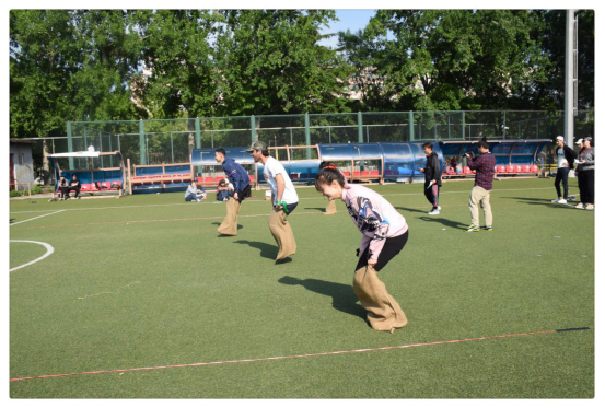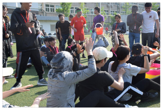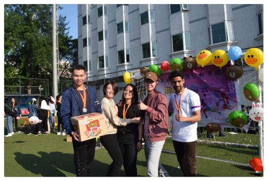 中外学生团结友爱、奋发向上的友好氛围。希望同学们通过此次趣味运动会能得到身心上的放松,以便为接下来的学习生活做好冲刺的准备。