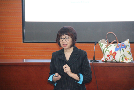 师生到场聆听。张瑛老师和师生们积极互动,介绍了教学三要素(Learner Development, Learner Differences and Learning Environment),并通过真实案例与师生讨论了学习者和学习原则中的三要素。