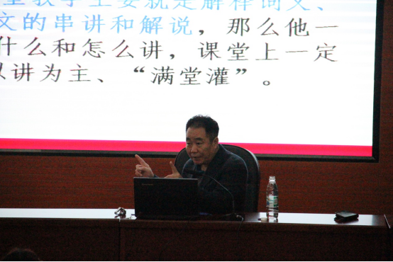 此次讲座的主题为“基于教学信念的对外汉语教学法”。讲座伊始,李泉教授对涉及全局性的宏观信念进行举例说明,探讨对外汉语教学的目标观、语言观、教师观、方法观,通过生动鲜活的例子让同学们充分了解了宏观信念对教师的教学行为及教学方法的重要影响。接着,李泉教授从教材观、语法观、语音观、偏误观及备课观等方面对涉及局部问题的中观信念进行了阐述,使同学们进一步加深了对教学信念的理解和认识。最后,李泉教授对涉及具体问题的微观信念进行举例,从课型观、背诵观、管理观等方面入手,使学生们全面认识了教学信念对对外汉语教学的影响。