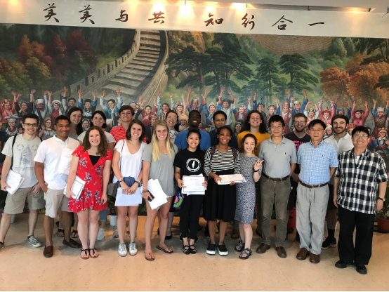 最后,教师为所有学生颁发结业证书、成绩单和纪念品,师生合影,为2019年乔治梅森、克莱姆森大学短期语言学习班画上了圆满的句号。