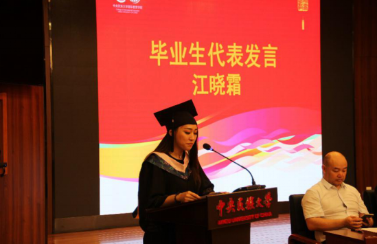 的感谢和对未来的期望,她在讲话中深情回顾了自己从家乡只身一人来到民大求学,从陌生到熟悉,到深深地热爱上民大、热爱上中国的感受。她希望自己能成为一名传播汉语的优秀人才,并祝愿母校蒸蒸日上、老师们工作顺利、同学们鹏程万里!