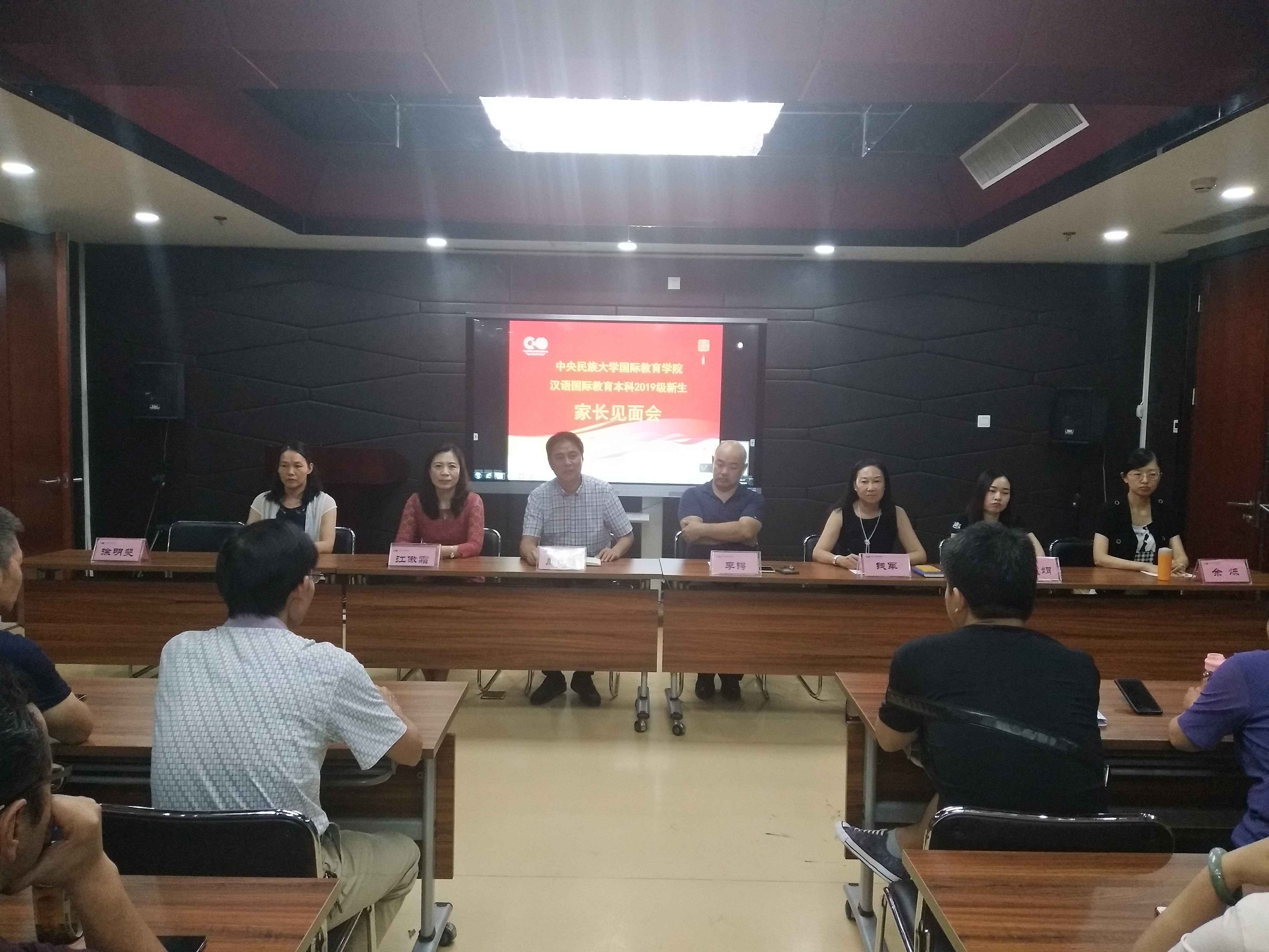 汉语国际教育专业学习。周书记提出了几点建议与家长们共勉:一是要具备健康向上的身心;二是做品德高尚的人;三是努力钻研学业;四是做好人生规划。他还说到,民大作为全国“211”、“985”和“双一流”建设大学,能够为学生提供优良的学术研究条件和其他有利资源,希望同学们能够珍惜四年的大学生活,深刻理解“美美与共、知行合一”的含义,在学院和家长的共同努力下,明确发展方向,规划好人生道路,为理想而奋斗。