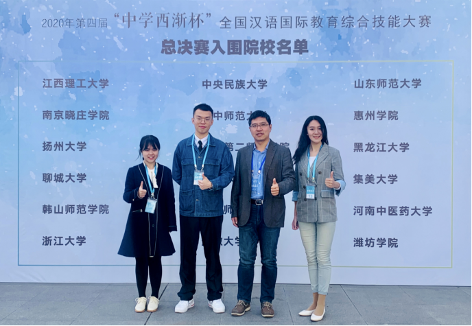 “中学西渐杯”全国汉语国际教育综合技能大赛始于2016年,每年吸引来自全国各地的近百所高校参赛。比赛分为初赛和总决赛两个阶段,初赛借助网络平台,各个学校提交教学视频和课件,专家评委对所提交的作品进行评判打分,遴选出优秀队伍进入总决赛。总决赛采取现场PK方式,各学校选手同台竞技、一决高下,决出最终名次。