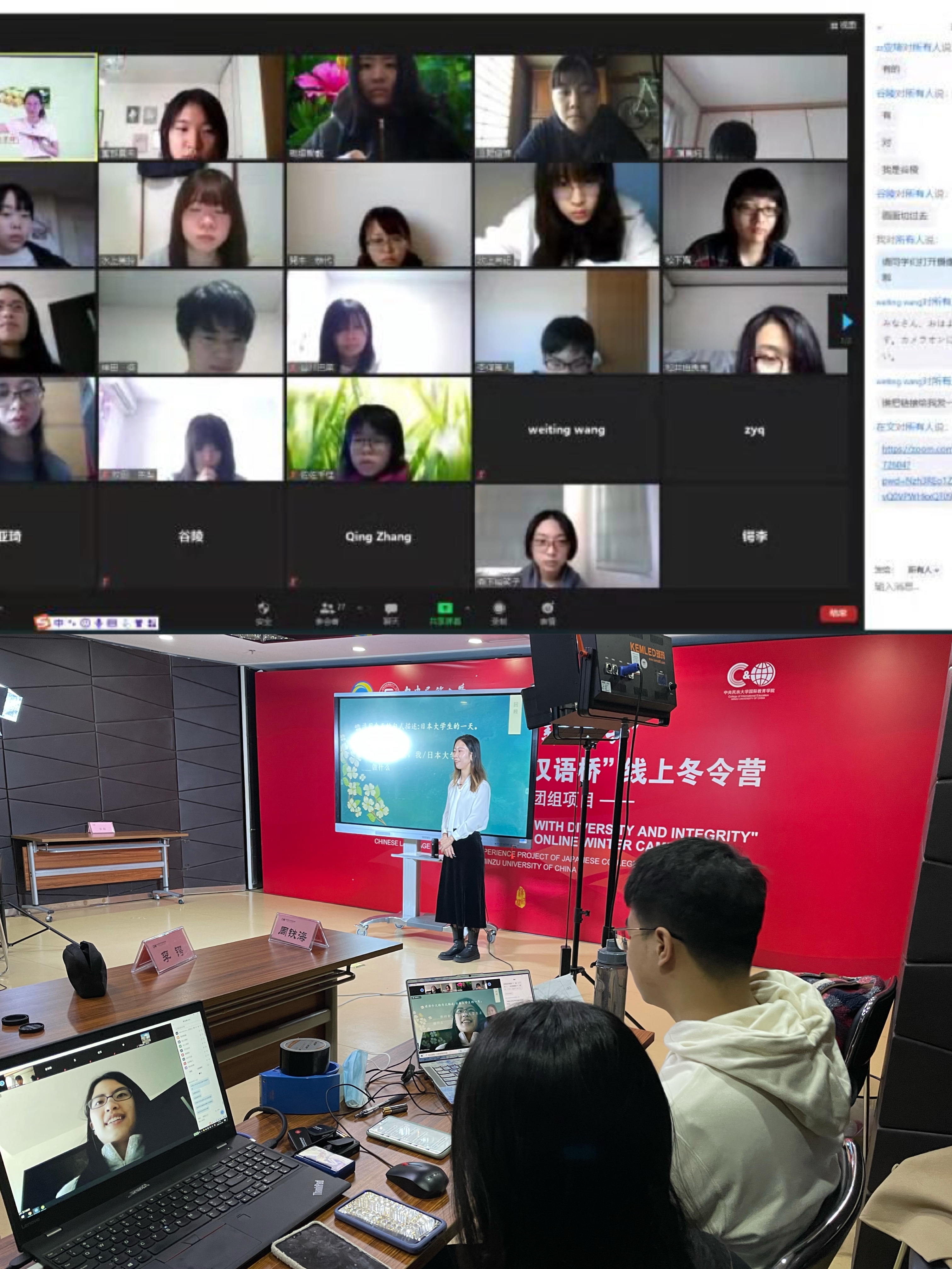 在这个特殊的时期,以一种全新的方式为学生们带来很多新的文化知识。她说:“平时我们课上没有时间讲这些中国文化。我觉得这种课程特别好,日本大学生也都非常喜欢这次的课程内容。我还要特别感谢我们的讲课老师们,尤其是对我们初级班听力口语不太好的学生,老师们不厌其烦的耐心讲解,保证让大家都能够得到锻炼,真的非常棒!让我也重拾初心,得益匪浅。千叶大学每年学习中文的学生特别多,大概有800到900人左右。但每年去中国留学的学生的人数特别少,所以我也希望通过本次线上的这种交流活动,能让更多的日本学生喜欢汉语,喜欢中国,并为将来的中日友好播下种子。希望明年我们能去Cool18