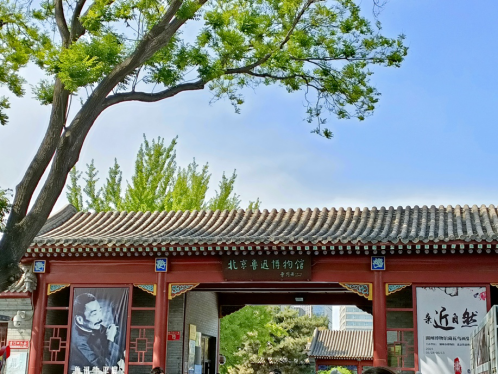 接着同学们移步至鲁迅故居。这座普通的小四合院是先生在1924年春至1926年夏间的住所,保存较为完好。鲁迅故居面积约400平方米,分为南房、北房与东西厢房数间,整体风格为青灰砖墙,朱红门窗,院中还有鲁迅先生手植的两棵丁香树。先生故居中展示了他的日用品,均为鲁迅及其家人使用过的原物,这些房间已按照当年先生居住时的情景进行复原陈设。