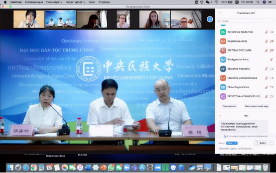 周铁海书记首先致辞,他对俄罗斯学员参加研修班表示热烈欢迎。对促成此次项目的公铭女士和李健先生表示感谢。并对教育部中外语言交流合作中心对研修班所给予的大力支持表示衷心感谢。周书记简要介绍了民大概况以及在中国民族高等教育中所处的地位和Cool18