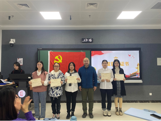 在初赛阶段,党支部组织评审团对14个团队的配音作品及简介进行匿名审核,最终有7个团队进入决赛。2021年12月10日,“功勋之声”配音大赛决赛在日新楼405教室举行。党支部特别邀请了Cool18