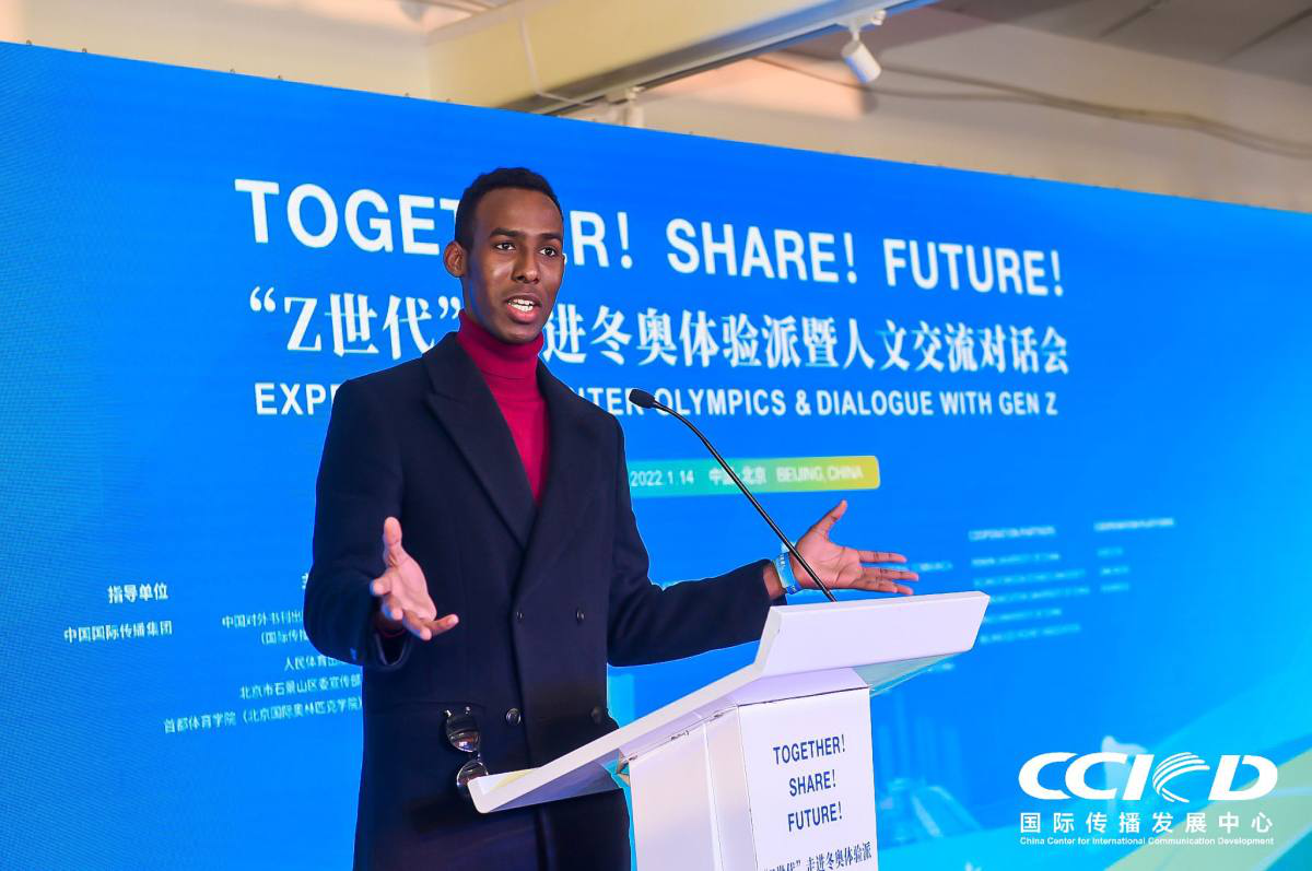 索马里学生阳光作为在京外国青年代表,参与了全球青年对话会这一环节。他说:“在奥运时刻,来自不同的国家、不同地方的人,通过运动团结起来,互相接受彼此,这就是美好的事情。”他也非常期待2022年北京冬奥会的精彩比赛,希望北京冬奥会和冬残奥会顺利举办。