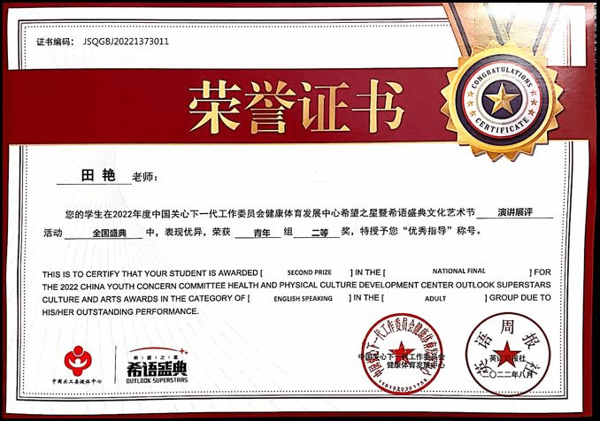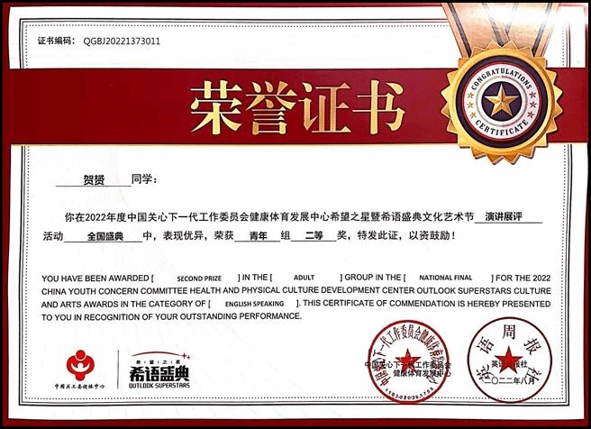 学生较为扎实的英语基础、优秀的演讲能力,以及良好的舞台表现力,最终荣获青年组二等奖。