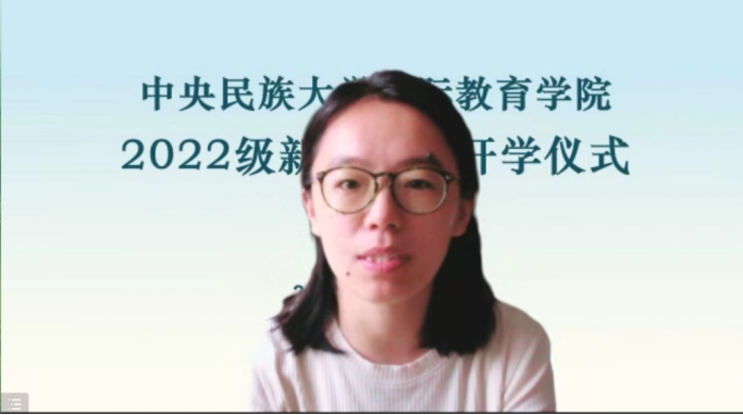 2019级本科生陶艳在代表老生对新生表达热烈欢迎的同时,也积极分享学习和科研竞赛经验,从学院秉承的“知行研+国际化”培养理念、搭建的“汉语桥”配音和留学生线上辅导等平台、以及在创新创业项目和本科生孵化项目等方面给予大力支持多个角度,为新生提供了详细的介绍。她鼓励新生们多参与活动,感受民大多民族的文化氛围,提升综合能力,锻造属于自己的青春年华。