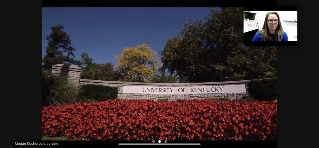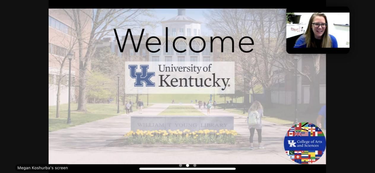 首先,两位老师进行了简短的自我介绍,并播放了肯塔基大学宣传片。 Megan 老师介绍了肯塔基大学的地理位置、硬件条件、学科建设等基本情况。肯塔基大学位于美国肯塔基州的莱克星顿市,是全美排名前一百的公立研究型学校,校园环境优美,师资力量雄厚。