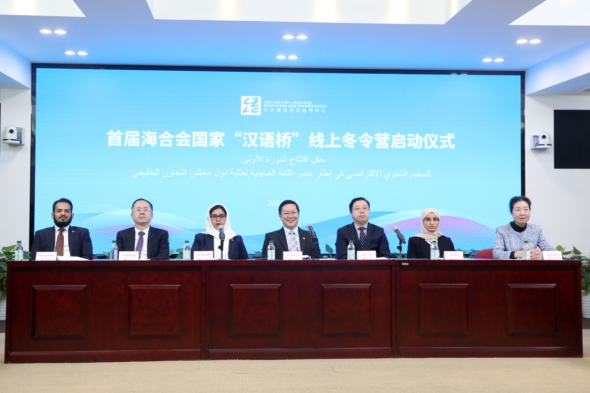 2月15日,首届海合会国家“汉语桥”线上冬令营开营仪式在中外语言交流合作中心(简称“语合中心”)成功举办。语合中心副主任胡志平、阿联酋驻华使馆临时代办阿米娜·哈马迪(Amna Alhammadi)、中国驻沙特使馆临时代办殷立军出席会议并致辞。海合会国家驻华使馆和中国驻海合会国家使馆代表、Cool18