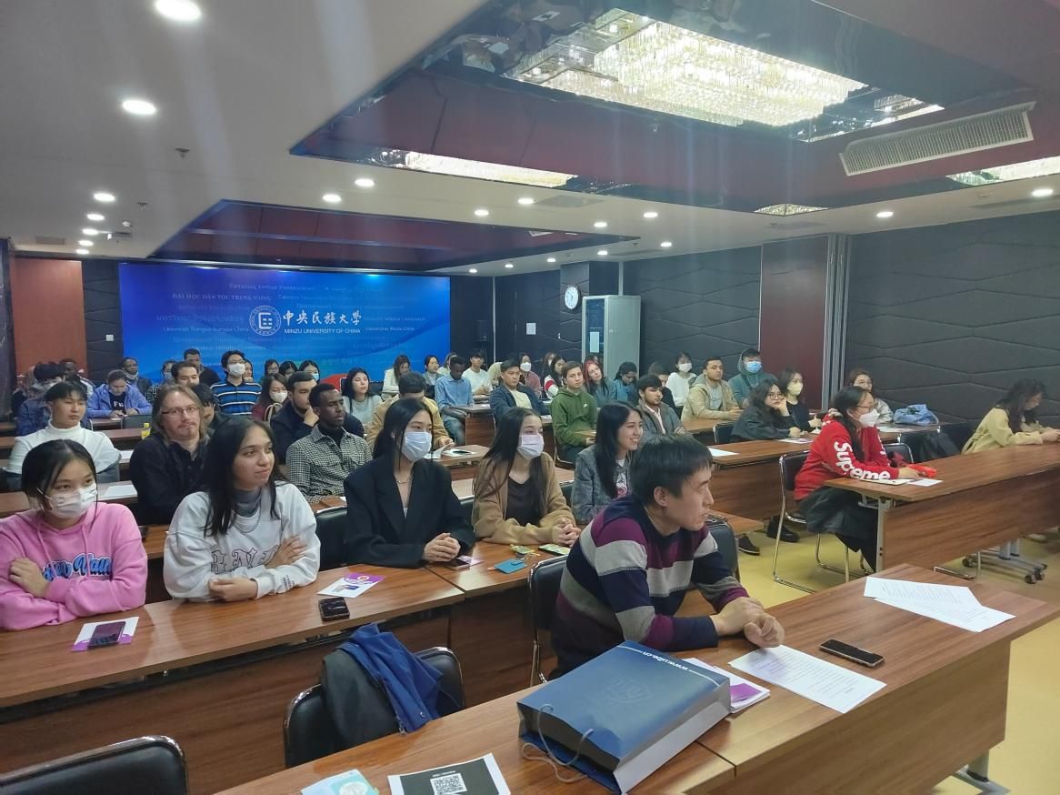 张芸、白瑞坤、王丙龙和陈力老师分别从签证办理、保险办理、公寓要求、教学要求、学习要求、活动安排和安全须知等方面进行了详细讲解。他们希望全体国际学生遵守中国法律,遵守学校的规章制度,提高安全意识,合理安排好自己的学习生活。