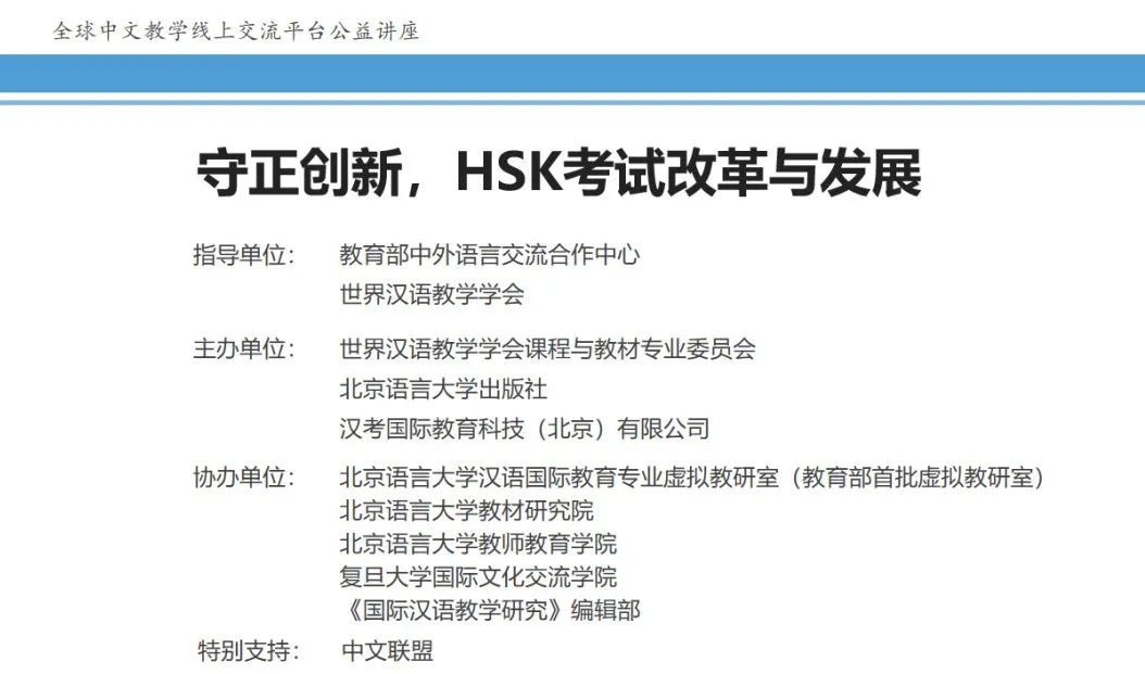 2023年8月5日,由世界汉语教学学会课程与教材专业委员会、北京语言大学出版社和汉考国际教育科技(北京)有限公司共同创建的全球中文教学线上交流平台举办了第38场公益讲座,主题为“守正创新,HSK考试改革与发展”。北京语言大学出版社总编辑、《国际汉语教学研究》主编、北京语言大学教材研究院院长郭风岚教授和《国际汉语教学研究》编辑部主任陈维昌教授出席了讲座。Cool18
