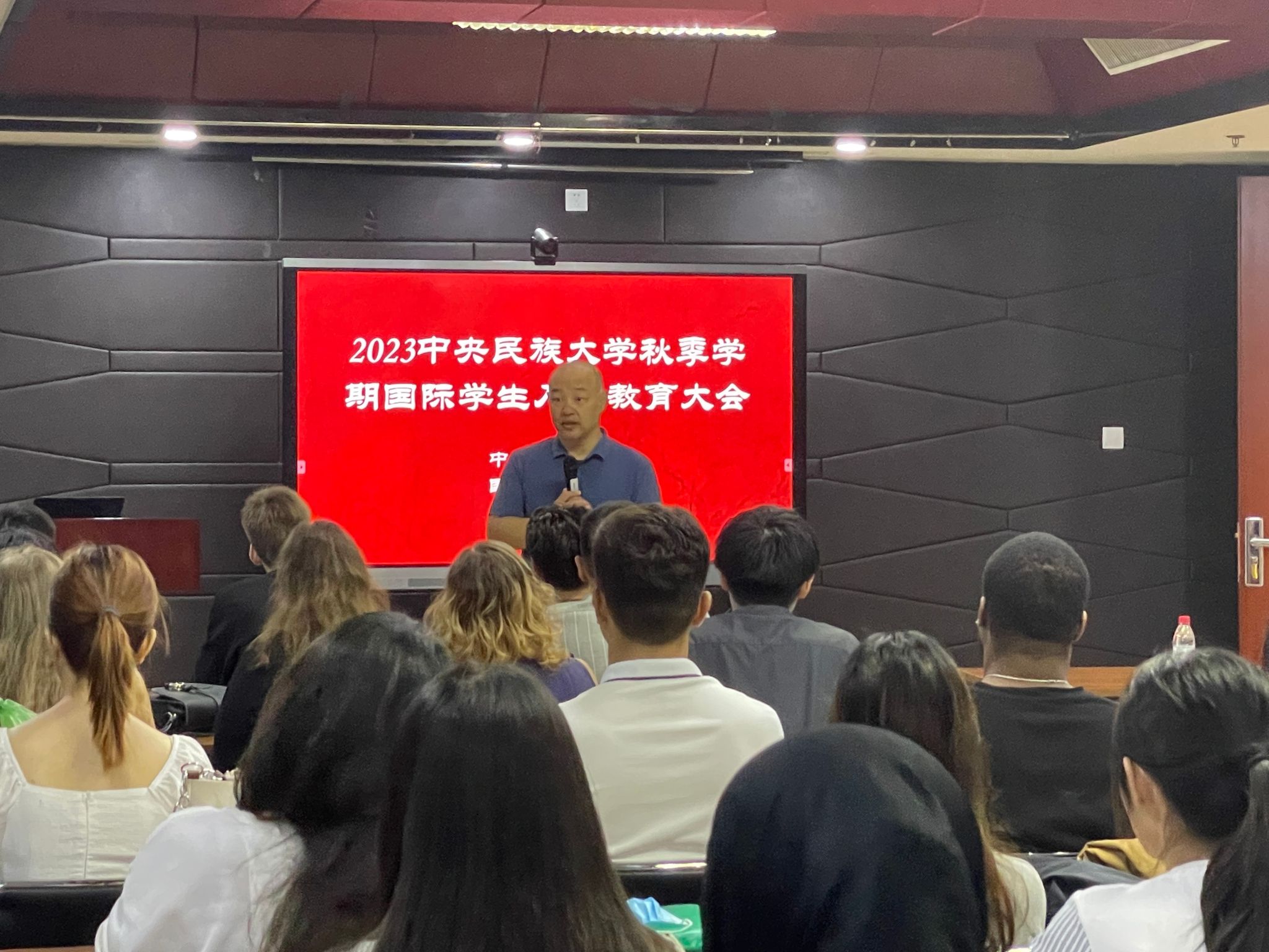 国际学生新生入学教育大会,对国际学生新生进行中国法律、法规和校纪校规的宣传教育,介绍在校学习生活须知。