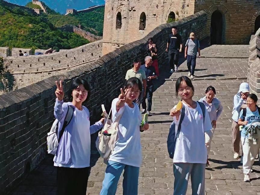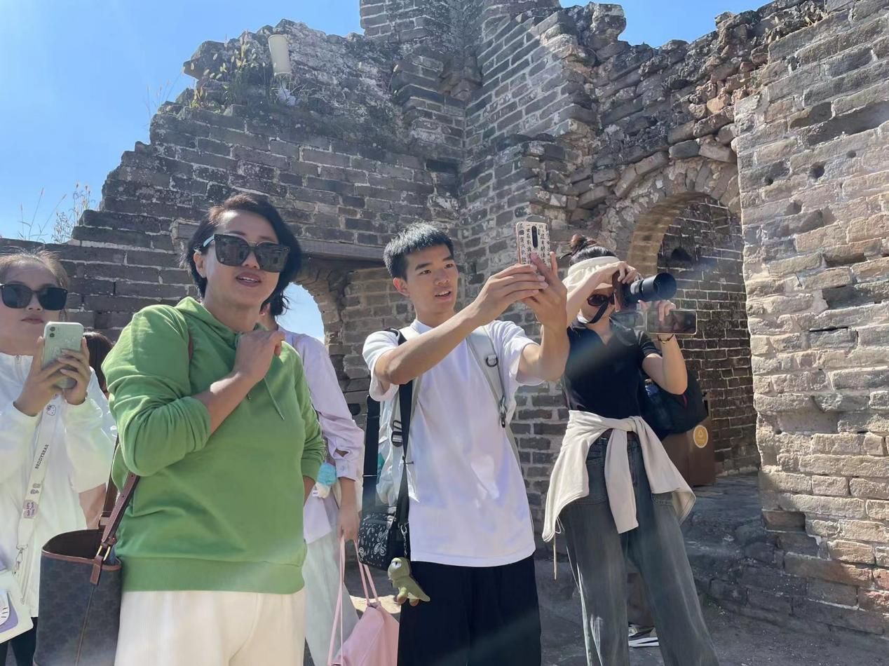 中外学生和老师们在爬长城的过程中相互鼓励,用双脚感受先人创造的奇迹。拾级而上,视野逐渐开阔,大家纷纷与美景合影留念,记录下兴奋的心情。触摸眼前的长城,感受历史的温度,每个人都沉浸在世界文化遗产的魅力中,既体验到了“不到长城非好汉”的豪情壮志,又深深体会到了一个民族振兴的伟大与豪迈。