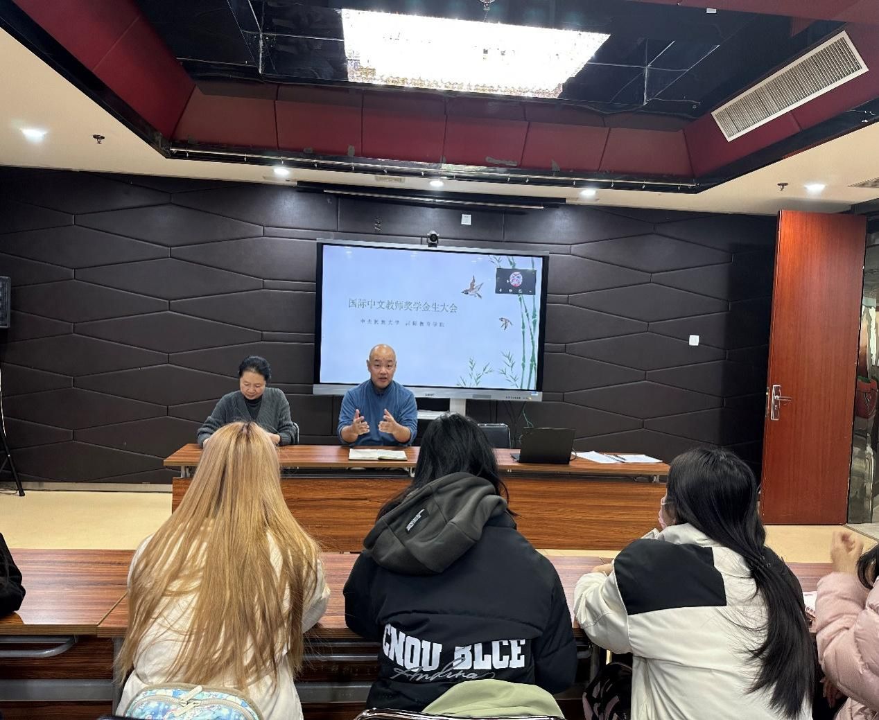 党委副书记、副院长李锷,奖学金负责人陈力老师,李沫老师以及在校的中国政府奖学金生和国际中文教师奖学金生参加了会议。