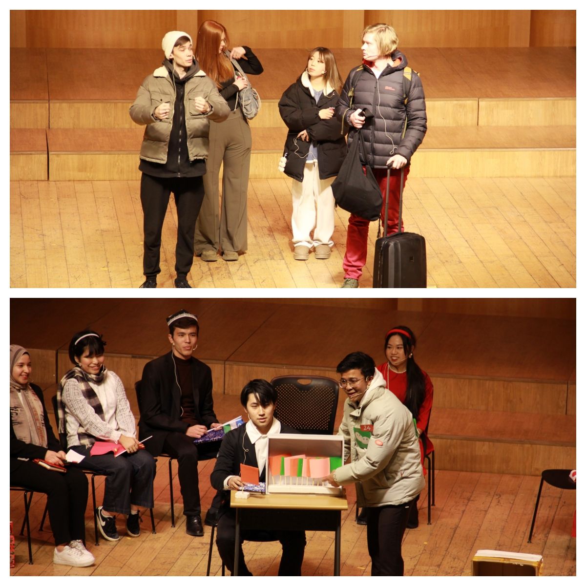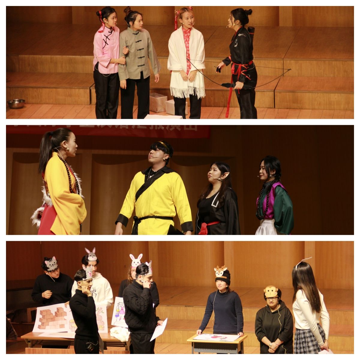 初级组学生尽管学习汉语只有三个月,但他们在舞台上流利地使用汉语进行舞台剧和短剧的表演,博得了台下观众的阵阵掌声和欢呼声。高级组的学生发挥其语言优势,用诙谐的台词和生动有趣的表演,或重新演绎中外经典故事,或真实地再现国际学生在民大的学习、生活和社交,引起了在场观众的强烈共鸣。最后国际硕士和泰国清莱府团结中学短期班的同学为汉语汇报演出献上了动听的歌声和美丽的泰国舞蹈。