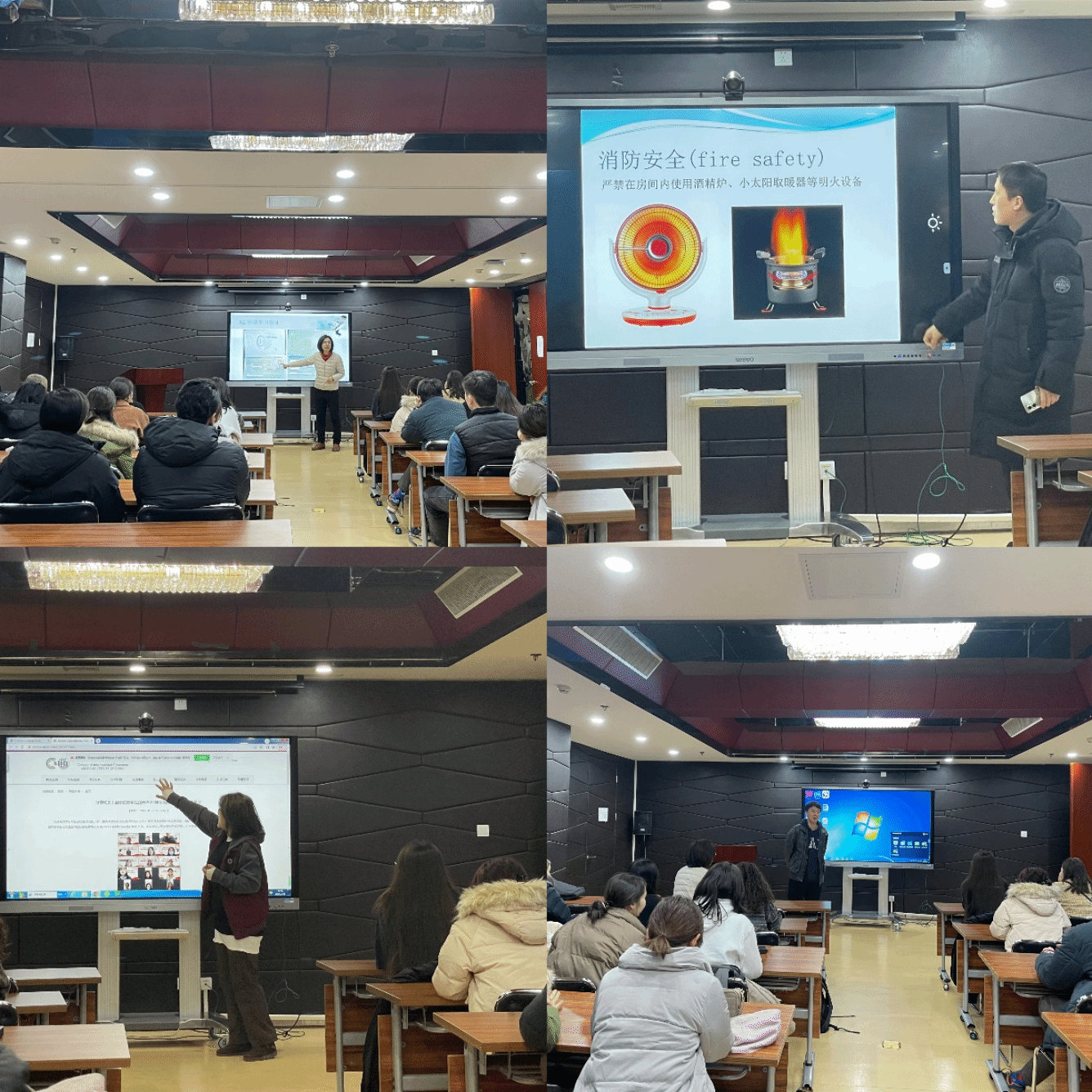 学生事务办公室张芸老师向同学们详细介绍了关于签证、来华留学医疗综合保险、考勤的规定,并进行了安全的教育。白瑞坤老师介绍了国际学生住宿注意事项,强调了中国法律法规和学校规定,消防安全等要求。李沫老师介绍奖学金生管理要求和申请须知,希望同学们提早做好准备。王丙龙老师向同学们介绍了Cool18