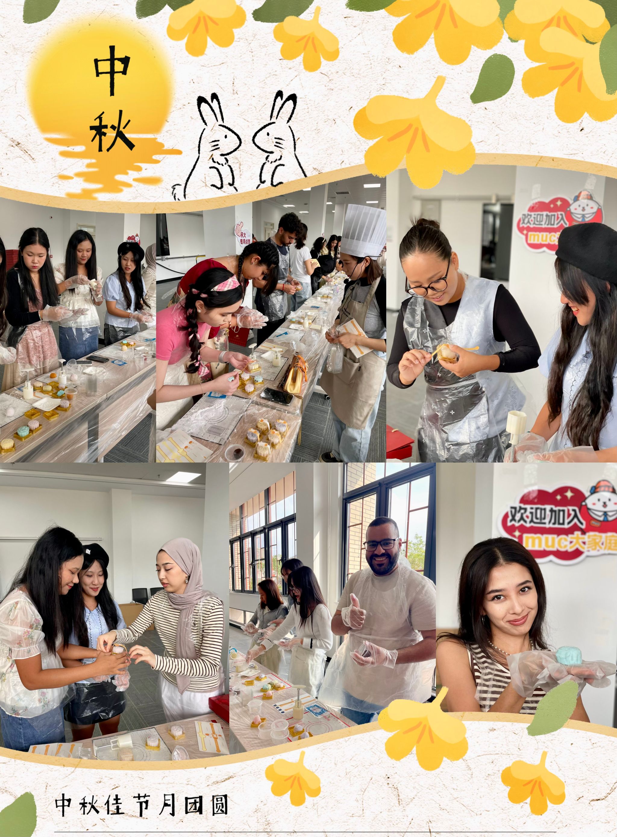 丰台校区的大学生活动中心,来自12个国家的40多名国际学生正在老师的悉心指导下,经过压皮、包馅、成型、装饰等步骤,亲手制作出形态多样,口味各异的冰皮月饼,在传统中国文化浓厚的氛围中,他们度过了难忘的中秋节,以中国传统方式遥寄乡思。