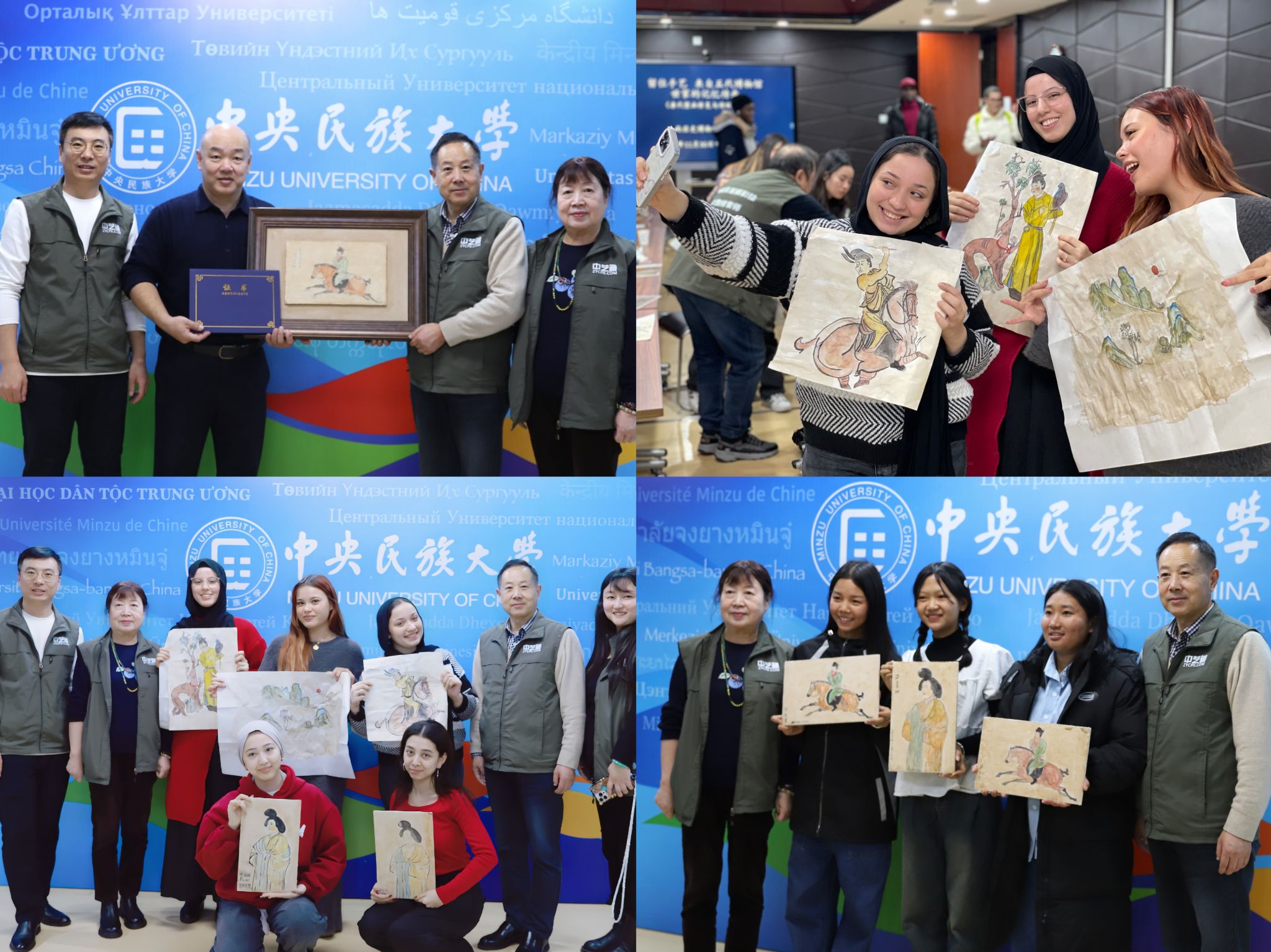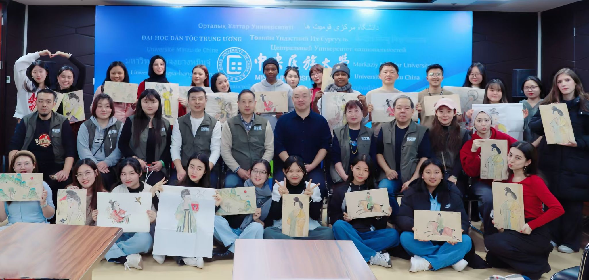 在传统临摹实践环节,同学们拿起画笔,亲身投入到唐代壁画的临摹过程之中。通过壁画专家们手把手的指导,同学们从线条勾勒到色彩填充,每一步都凝聚着专注与热情。经过两个多小时的努力,一幅幅充满创意与活力的唐代壁画作品在国际学生的笔下诞生。本次唐代壁画临摹体验活动,不仅是对古代技艺的传承,更是中华文化跨越时空、跨越国界的生动展现与传承。