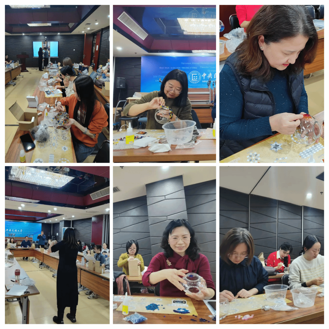 副院长、学院分工会主席江傲霜发表了热情洋溢的讲话。她表示学院工会非常重视教职工的文化生活,组织本次活动旨在通过手工制作,让大家享受艺术创作的乐趣,释放生活中的压力。随后,马赛克灯DIY艺术活动正式开始。