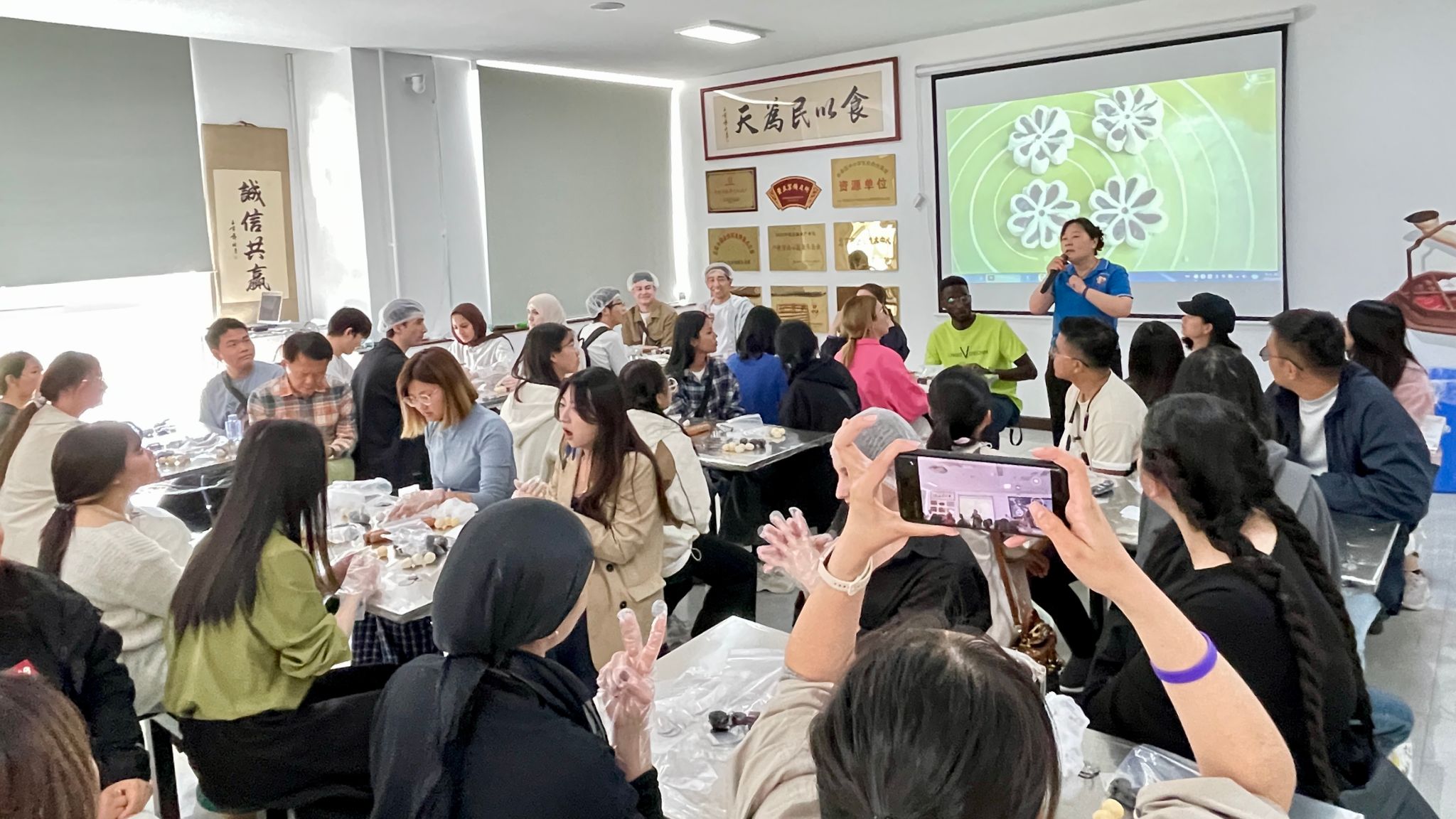 在活动的交流环节,中外学生们更是打开了话匣子。中国学生主动分享节日点心习俗,如中秋月饼象征着团圆美满,元宵汤圆寓意着家庭和睦等,让留学生们对中国传统文化有了更直观的认识。留学生们也踊跃介绍本国传统美食,分享背后的文化故事。哈萨克斯坦姑娘美丽和身旁的中外学生一样,高兴地和同学们分享着自己亲手制作的美食,大家一边品尝,一边交流,甜蜜的滋味架起了彼此沟通的桥梁。同学们用指尖的京味儿传承进行着一场跨越国界的文化对话,不同文化在这里相互碰撞、相互融合。