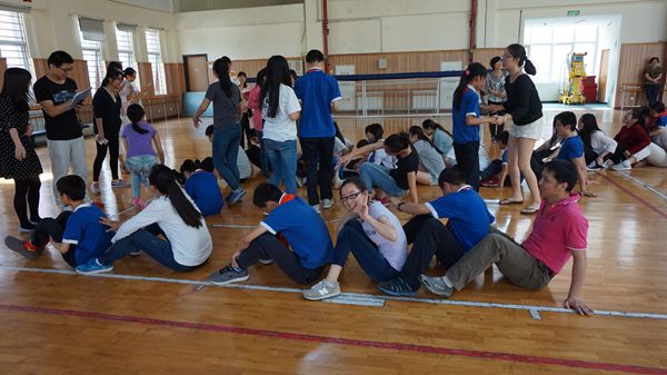 最后进行的是“蜗牛赛跑”,整个小组坐在地上手足相连一起往前移动,这也是最考验团队合作的项目了。有的组配合默契,大家喊着口号迅速到达终点,有的组则找不准节奏,走着走着“蜗牛”就断了,但还是坚持往前走。经过了这三轮游戏孩子们和Cool18