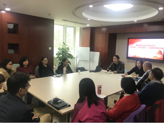 在学院会议室分2次召开了领导班子“守初心、担使命,培养具有中国情怀、国际视野的国际化人才”主题调研座谈会。党总支书记周铁海、副书记兼副院长李锷、副院长江傲霜、教研室主任、教授教师代表、管理岗教师参加了座谈会。