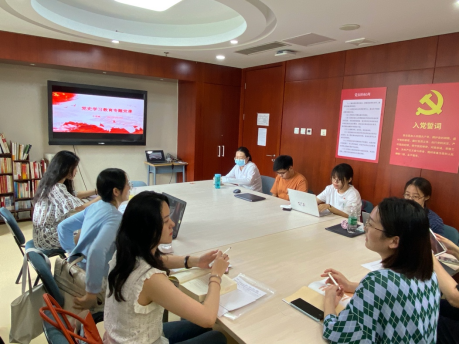 牛琛淞同志由新文化运动引入,带领支部党员从“新民主主义革命时期完成救国大业”、“社会主义革命和建设时期完成兴国大业”、 “改革开放和社会主义现代化建设新时期推进富国大业”以及“ 推进中国特色社会主义新时代、实现强国大业”四个阶段回顾党的一百年辉煌历史。