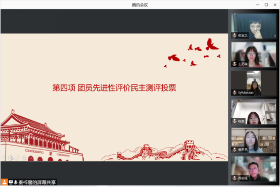 接着,团支部的各位团员依次发言,对自己本学期的学习体会进行阐述,提出其改正与努力的方向,同时其他团员对其进行评议,肯定成绩、指出不足。然后,支部以问卷星的形式开展了团员先进性评价的民主测评投票,团员间彼此投票、展开评议,顺利完成了团员先进性评价的工作。此外,Cool18